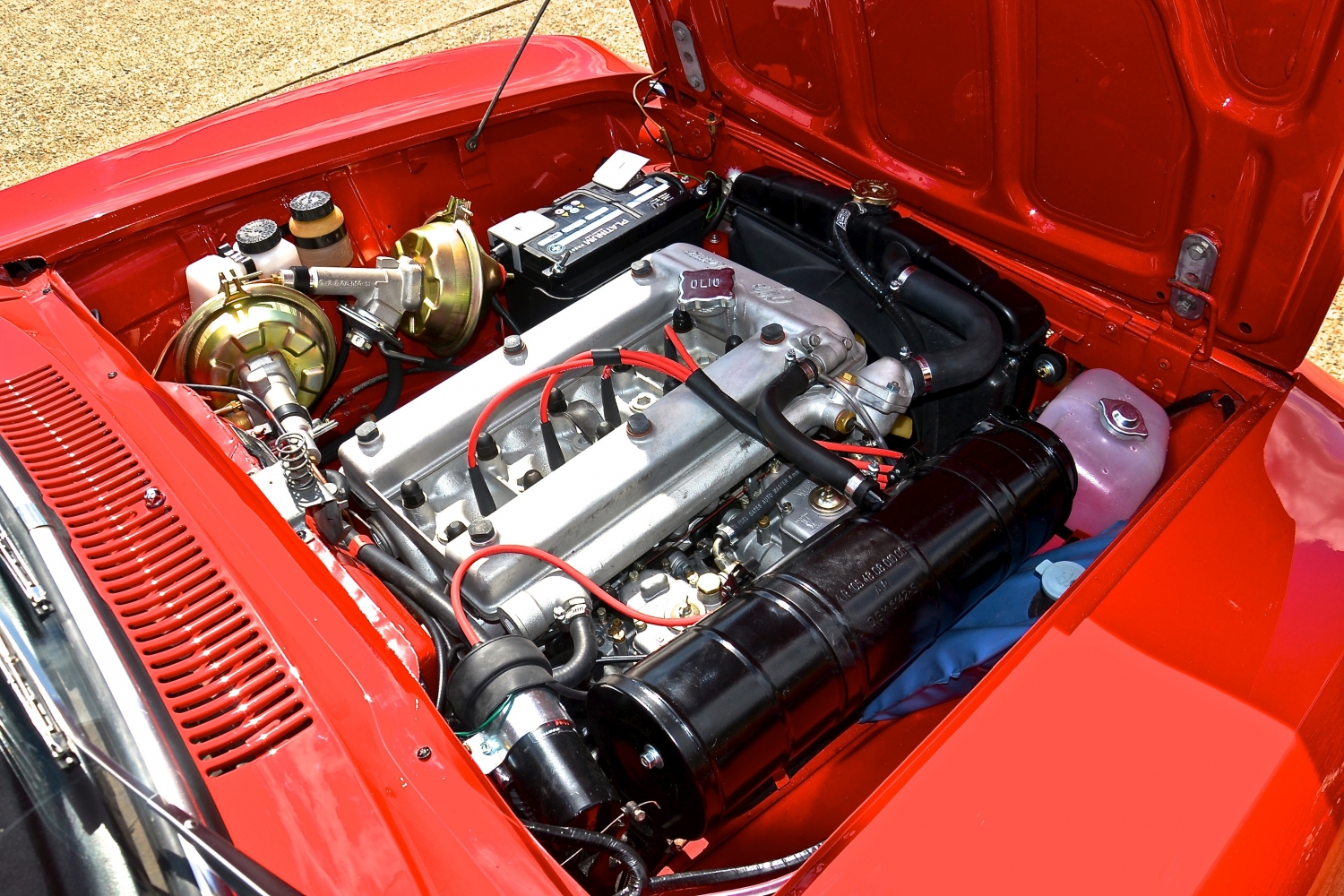 This car was a true barn find having been stored indoors and unused for 10 years. Once purchased we commissioned a full nut and bolt restoration of the car which was in a generally sound state. The body was fully stripped, which revealed some previous corrosion repairs over the years, so we made the choice to replace the three section sills and front floor pans both sides with new panels, all of the work was photographically documented. The engine was lightened and balanced and fully rebuilt along with the gearbox, differential and all suspension components cleaned and powder coated. The braking system was replaced in its entirety along with all new fuel lines, fuel tank and the Weber carburettors rebuilt. The suspension was fitted with Eibach springs and Koni shock absorbers all round.